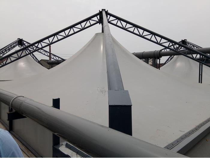 • 普通碳鋼骨架+反吊氟碳纖維膜